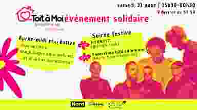 Venez à la rencontre de l'association Toit à Moi et découvrez son action à l'occasion d'un événement solidaire et festif le samedi 31 aôut à partir de 15h30 au Bistrot St So ! Passez un agréable moment en famille ou entre amis autours d'animations et profitez d'une soirée rythmée par les membres du groupe grunge-rock HERNEST à 20h30 suivi d'un DJ set avec Fabissima & Edmmont (Merci Soleil Records).