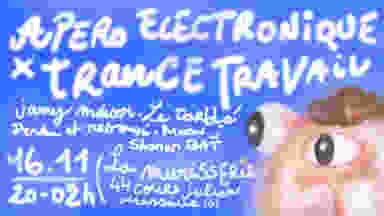 Les équipes d’Apéro Électronique et Trance Tarvail vous accueillent à la Murisserie pour un classico Marseille/Paris sur fond de progressive et de trance tout en vélocité. 🚅 𝐏𝐫𝐨𝐠𝐫𝐚𝐦𝐦𝐚𝐭𝐢𝐨𝐧 🚅 Jamy Maison 🚥SC :