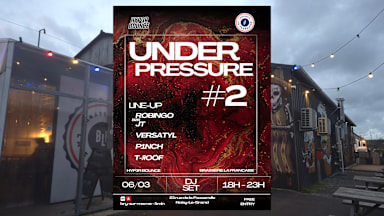 UnderPressure#2 La première édition a tout retourné, Alors on retourne tout retourner Hard House, Hard Trance, Bounce ---Line up--- ROBINGO / JT (b2b) 18H - 20H VERSATYL 20H - 21H P1NCH 21H - 22H T-ЯOOF 22H - 23H Toujours avec le collectif Hyp3rBounce. Infos pratiques : Date : 06/03/26 Horaire : 18H - 23H Lieu : 23 rue de la Passerelle, Noisy-le-Grand. Chez Brasserie la Française L'entrée est gratuite mais la consommation est obligatoire. Événement présenté par Hyp3rBounce