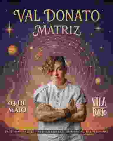 Val Donato traz para a Vila do Porto um novo show tocando as musicas do seu mais novo lançamento, o álbum Matriz! Com Rafael Chaves e Nido Fernandes nas guitarras e violões , Júnior Blaw no baixo e Filipe Soares na bateria, Val Donato vai tremer as estruturas da Vila com muito rock cheio de referências e texturas nordestinas! Participação mais que especial de Ruanna, Sandra Belê, Nathalia Bellar e Cinthia Peromia. É dia 03 de maio , às 22h! Garanta seu antecipado e venha viajar nesse som que tá incrível!! Serviço: Sabado 3 de manio 21 horas Vila do Porto Largo de São Frei Pedro Gonçalves,8 Varadouro, Centro Histórico Entrada: $30 Obrigatório na ENTRADA apresentação dos seguintes documentos: - Documento com foto (CNH ou RG) - Menor de idade, confirmar a classificação do show e documentos junto a casa (Via DM no Instagram) - Na ausência de comprovação ou kg de alimento será cobrado uma taxa referente ao valor da inteira.