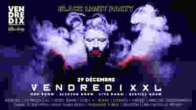VendrediXXL 29 décembre | 19h à 6h BLACK LIGHT PARTY LGBTQA+ festivité PERFORMERS ELECTRO ROOM POP ROOM LIVE ROOM BESTIAL ROOM OUTDOOR