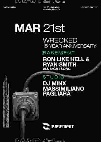Wrecked take us into spring with a b2b set from founders Ron Like Hell and Ryan Smith. Taking over BASEMENT, the duo is pulling out all the stops for the one. Over nearly fifteen years, Wrecked has defined itself by its music-first policy, and Ron and Ryan are exemplars of this philosophy. Matching dank, grooving energy with unrestrained punkish power, moments of lush depth and a top-to-bottom command of dancefloor momentum, this will be special.