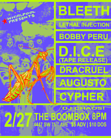 Join us for a mixed bill Rock & Hardcore show at The Boombox! Whirlpool is about blending together the diverse range of talent that South Florida has to offer, and this one is not to be missed... 7 bands of varying styles will melt your face clean off. And if that isn't enough for you, stick around late night for DJ Chaos! who will surely get the box booming. Support local, live music and venues who are for the community.