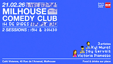 NOUVELLE SAISON, NOUVEAU LIEU, NOUVEAU FORMAT 📍 Le MCC inaugure sa troisième saison le 21 février pour 1h de rires !!! Rendez-vous au @cafévivienne qui nous accueille pour la première fois (et peut-être pas la dernière…) 🫣 🚨 NOUVEAU FORMAT 🚨 Le MCC passe en mode double session : 2 horaires, à vous de choisir celui qui vous arrange, soit 19h, soit 20h30 ! Côté artistes, on reste dans la nouveauté avec 3 humoristes qui n’ont encore jamais foulé la scène du MCC : @kyl.murat @jaygervais_ @victoria.pianasso + notre MC national @albizzer Le Café Vivienne vous régalera avec une sélection de foods & drinks, tout au long de la soirée. LES INFOS À RETENIR :   - Samedi 21 février - 1 session à 19h - 1 session à 20h30 - Café Vivienne, 40 Rue de l'Arsenal, 68100 Mulhouse - Restauration & bar sur place (oui, on a pensé à ta soif ET à ton estomac) - Entrée 8€ + sortie au chapeau Préparez-vous pour un samedi cosy et ramenez votre date, vos potes ou même vos grands-parents 🫂 KISSSS 😚