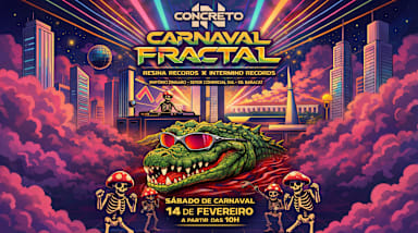 O carnaval chegou! Este ano a Resina Records se juntou à InConcreto para trazer a Brasília um sábado de carnaval no melhor estilo psicodélico que todo mundo gosta! O Carnaval Fractal traz como gravadora convidada a consolidada Intermind Records para agitar a abertura do seu carnaval em 14 horas de festa e psicodelia nas ruas de Brasília. Prepare sua fantasia mais derretida e venha pular o carnaval rave mais pesado da cidade! Ingressos promocionais disponíveis agora! Fiquem ligados pois em breve disponibilizaremos o line-up completo para você se programar! CARNAVAL FRACTAL Dia 14 de fevereiro de 2026 (sábado de carnaval) A partir das 10h da manhã Local: Empório Zíngaro - Setor Comercial Sul, Ed. Baracat.