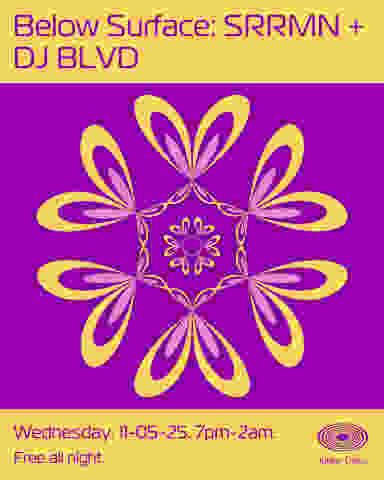 BELOW SURFACE is a deep house experience built for dancers who want more than the surface level. Moody, groovy, and hypnotic rhythms drive the night as we guide the floor into deeper connection and darker, late-night energy. Join resident DJs SRRMN and DJ BLVD as they deliver a journey beneath the obvious — where the music takes hold and the vibe gets real. __________ Jupiter Disco is a safe space for all. Our most important goal is to ensure everyone who steps into our space feels welcome and safe. In order to achieve this goal, it's mission critical that everyone approaches each other with respect. That means everyone. We are passionate about bringing people together and building connections between participants in and adjacent to our community. Go ahead and say hi to someone new while you're here with us! If you see or experience anything that makes you feel uncomfortable, please alert one of our team members and we will coordinate a resolution immediately. We encourage everyone to be present and interface with the physical elements around you while you're with us, so we ask that you please limit your phone use throughout the space. Phone screen and camera lights can also be distracting, so please be mindful of the brightness and the length of time you use those lights, if at all. If you intend to smoke (anything), please take a break outside and take a few steps down the block. Don't worry, we always have re-entry.