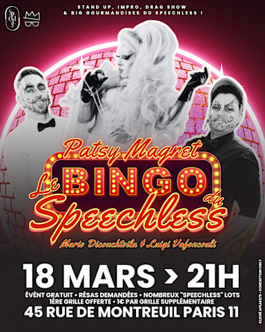 📅 18 MARS : LE DOUBLE ÉVENT ! Le @speechlessbar récidive avec sa formule magique : 2 SHOWS, 1 SOIRÉE, 0 LIMITE. 🚀 🎤 20h00 | ODRISHKA : ARTISTE EN GALÈRE ! L’incroyable @odrishka.artiste déballe presque tout dans la découverte de son 1er One Woman Show. 1H de rire, de chant et de loose assumée avec panache ! 🎭✨ 🎱 21h00 | LE BINGO DE PATSY & SES FILS @patsy_magret (The Big Queen of Paris) reprend les commandes avec ses fils Mario Dicouchtoila & Luigi Vafoncouli 🍄🤌 Au programme : Stand-up, Impro, Drag Show et le mythique Bingo où tout peut arriver ! 🎁 DES « SPEECHLESS LOTS » TOUTE LA SOIRÉE ! On vous gâte avec des surprises exclusives à gagner. Repartez avec un souvenir... et peut-être un peu moins de dignité ! 😉 💡 INFOS PRATIQUES : 📍 Speechless — 45 rue de Montreuil, Paris 11 💰 Entrée GRATUITE 🎟️ 1ère grille offerte / 1€ la suivante ⚠️ RÉSA OBLIGATOIRE Places limitées, ça part plus vite qu’un shot de tequila ! On a hâte de vous voir crier BINGO !