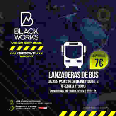 BUS OFICIAL DE BLACKWORKS SALIDA DESDE PASEO DE LA INFANTA ISABEL 3 (ATOCHA, MADRID) HORARIOS CERRADOS (INDICADOS EN TU TICKET) PLAZAS LIMITADAS NO ESTA PERMITIDO TRANSPORTAR BOTELLÓN