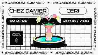 Premier épisode de la résidence de Chez Damier ! 📍 Vendredi 29 Juillet - 23h30 - 07h00 Club : Chez Damier + Ceri Appart : Outdom Artwork : Léa Albregue ________________________ 🎟 NOS TARIFS : Préventes avant minuit : 10e Préventes avant 1h: 15e Entrée sur place : 20e FREE ENTRANCE FROM 4:30AM RÉSERVATION BOUTEILLE 07 68 68 73 33 L’accès à l’événement est interdit aux personnes mineures. Une pièce d’identité pourra être exigée à l’entrée. L’établissement se réserve le droit de refuser l’entrée. The entry is forbidden to people under 18. An ID might be asked at the door. The venue reserves the right to prevent the entry. ________________________ 👉 INFOS PRATIQUES : Le Badaboum - 𝘊𝘭𝘶𝘣 - 𝘊𝘰𝘯𝘤𝘦𝘳𝘵𝘴 - 𝘙𝘦𝘴𝘵𝘢𝘶𝘳𝘢𝘯𝘵 2 Rue des Taillandiers, 75011 Paris — Station de métro la plus proche : Ledru Rollin - 𝘓𝘪𝘨𝘯𝘦𝘴 : 1, 8 — Bus : 46, 61, 69, 76, 86