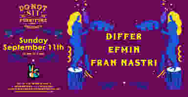 Sunday, September 11th, Do Not Sit On The Furniture presents DIFFER EFMIN FRAN NASTRI We are now open from 10 pm to 5 am. Come enjoy our newly renovated magical venue... Please note that table reservations are highly recommended.. Table Reservations: Please call 5105515067 or visit: donotsitonthefurniture.com ALL SALES FINAL & NO REFUNDS Dress Code: Dress to Impress / Causal Upscale *Assumption of Risk and Liability Waiver* While attending the event, you may be exposed to the risk of contracting a communicable disease, including but not limited to COVID-19. While we have put in place preventative measures to reduce the spread of COVID-19, we cannot guarantee that you will not become infected with COVID-19. By attending and/or participating in the event, you assume all such risks related to any illness (including COVID-19), injury or harm and are deemed to be given a full release of any liability to our venue location and all associated producers, sponsors, including their owners and employees, to the fullest extent permitted by law.