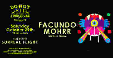 Saturday, October 29th, Do Not Sit On The Furniture presents DO NOT SIT ON HALLOWEEN ft FACUNDO MOHRR [All Day I Dream] Vibe Setter: SURREAL FLIGHT We are now open from 10 pm to 5 am. Come enjoy our newly renovated magical venue... Please note, table reservations are highly recommended.. Table Reservations: Please call 5105515067 or visit: donotsitonthefurniture.com ALL SALES FINAL & NO REFUNDS Dress Code: Dress to Impress / Causal Upscale *Assumption of Risk and Liability Waiver* While attending the event, you may be exposed to the risk of contracting a communicable disease, including but not limited to COVID-19. While we have put in place preventative measures to reduce the spread of COVID-19, we cannot guarantee that you will not become infected with COVID-19. By attending and/or participating in the event, you assume all such risks related to any illness (including COVID-19), injury or harm and are deemed to be given a full release of any liability to our venue location and all associated producers, sponsors, including their owners and employees, to the fullest extent permitted by law.