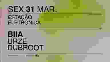Dia 31 de Março é o dia escolhido para a 9.ª Estação Eletrónica da temporada. Para entrarmos na recta final em grande vamos receber a BIIA, que em solo nacional já dispensa apresentações, e cada vez mais se tem vindo a cimentar como uma artista de calibre internacional, levando lá fora e cada vez mais alto a bandeira do nosso país. Com ela vamos ter o Dubroot, presença habitual em boas festas do panorama português, e também o nosso residente Urze.