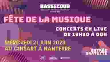 ✨FÊTE DE LA MUSIQUE ✨ Musique Pour Tous - La Bassecour vous invite à passer une fête de la musique digne de ce nom au CinéArt ! Pour célébrer la musique comme il se doit, c’est trois groupes en live qui viendront se produire de 19h30 à 23h30 ! 🎸 Vous pourrez profiter de cette soirée tout en buvant des coups à petits prix au bar du Cinéart ! Si le mauvais temps est parmi nous, pas de panique ! La scène se trouve à l’intérieur tout en ayant accès sur l’extérieur, vous pourrez faire la fête abrité.e ou pas c’est votre choix ! 🔸 PROGRAMME DE LA SOIRÉE : De 19h30 à 20h30 - BACKK - Rock music De 21h à 22h : CRIPPLE FIGHT - Rock music De 22h30 à 23h30 : LES CAS PERDUS - Rock music Un stand informatif sur notre association sera mis en place durant la journée pour vous informer avec plus de précisions sur notre café culturel, nos studios de répétitions ainsi que notre école de musique. 🍻 Vente de boissons sur place. 📅 Mercredi 21 juin 2023 - Entrée gratuite 📍 5 Bis Rue des anciennes mairies 92000 Nanterre 🚈 RER A - Nanterre Ville - Sortie 3 🚌 Bus 157 - 159 - 160 - Arrêt “Anciennes Mairies”