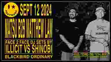 Footwork presents Matsu (Slow Roast Records) B2B Matthew Law (Fools Gold) Featuring face to face/b2b DJ sets by Illicit and Shinobi All electronic music all night in the back room of Blackbird Ordinary LIVE STREAMED