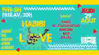 🚨 VIRAGE EST UN LIEU QUI PRÔNE LE RESPECT ET LA BIENVEILLANCE ENVERS TOUSTES 🚨 L’établissement se réserve le droit d’admission. Habibi Love continue en mode summer vibes itinérant pour enflammer les spots plus bouillants de Paname et s'installe pour la 1ère fois à Virage le jeudi 29 AOÛT !! RDV de 19h jusqu'à l'aube à Paris 17 en cette fin d'été pour répandre amour et rythmes du Maghreb et du Monde Arabe, du désert à la Méditerranée. De classiques aux sonorités avant-garde et électroniques underground, l'objectif est de te propulser haut et loin. Une expérience sonore exquise remplie d'amour et de danses effrénées !! Yallahhh ⎃⎃⎃⎃⎃⎃⎃⎃⎃⎃⎃⎃⎃ ARTISTES ⎃⎃⎃⎃⎃⎃⎃⎃⎃⎃⎃⎃ ⏈ YANE (North Africa & Electronic - Algérie) ⏈ ⏈ BAB (Oriental & Arab beats / Pardonnez-nous) ⏈ ⏈ ZAJAL (Arabic Electronic live + DJ set ) ⏈ ⏈ DJ CUCURUCHO (Arab sounds & Oriental grooves) ⏈ ⏈ BINOME (Modern Arabic & Oriental sounds) ⏈ ⏈ GROOVALIZACION DJs (Techno-Oriental & Arab-beats) ⏈ ⎃⎃⎃⎃⎃⎃⎃⎃⎃⎃⎃⎃⎃ STYLES ⎃⎃⎃⎃⎃⎃⎃⎃⎃⎃⎃⎃⎃ ⌖ GNAWA ⌖ CHAABI ⌖ ORIENTAL GROOVES ⌖ ARABESQUE ⌖ TURKISH DISCO ⌖ ELECTRO ORIENTAL ⌖ RAI ⌖ ARAB HIP HOP ⌖ ELECTRO CHAABI ⌖ REGGAE ORIENTAL ⌖ TOUAREG ⌖ ARABIC FUNK ⌖ MEDITERRANEAN SOUL ⌖ MAGHREB ⌖ ARAB BEATS Habibi Love est une célébration de la diversité et le partage inspiré par les musiques et cultures populaires provenant des pays qui ont l'arabe comme langue véhiculaire (du Maghreb au Proche Orient) ou l'Islam comme religion principale (de l'Afrique de l'Ouest, à la Turquie, l'Iran ou le Pakistan). Rencontre festif et convivial autour des musiques populaires et contemporaines de ces régions riches et diverses entre sonorités organiques et nouvelles créations digitales. ▬▬▬▬▬▬▬▬▬▬▬▬▬▬▬▬▬▬▬▬▬▬▬▬▬▬▬ INFOS PRATIQUES ▬▬▬▬▬▬▬▬▬▬▬▬▬▬▬▬▬▬▬▬▬▬▬▬▬▬▬ 🗓️JEUDI 29 AOUT 19:00 - 5:00 📍LIEU 𝗩𝗜𝗥𝗔𝗚𝗘 26 rue Hélène et François Missoffe - 75017 Paris Open air mais couvert ! La météo ne nous aura pas ! Attention pour la commande de votre VTC, veuillez indiquer l'adresse suivante pour arriver à bon port : 6 boulevard du bois le Prêtre 75017 Paris Métro 13 : Porte de Clichy ou Porte de Saint-Ouen Métro 14 : Porte de Clichy RER C : Porte de Clichy Tramway T3b : Épinettes - Pouchet ___________ RESPECT ET BIENVEILLANCE La fête oui, mais pas n’importe comment ! À Virage, nous tenons au respect de certaines valeurs. Notre crédo est simple : tolérance zéro NO LGBT-PHOBIAS NO RACISM NO SEXISM NO MISOGYNIA NO HATE Il est strictement interdit d’insulter, de discriminer, d’harceler ou d’intimider qui que ce soit (dans nos murs, comme à l’extérieur). L'établissement se réserve le droit d'entrée ! La direction se réserve le droit d'entrée. Interdit aux mineurs.
