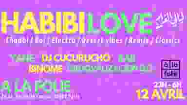 ⌖⌖⌖⌖⌖⌖⌖ HABIBI LOVE ⌖⌖⌖⌖⌖⌖⌖ ⍨ ORIENTAL VIBES PARTY A LA VILLETTE ⍨ ☫ CHAQUE 2EME VENDREDI DU MOIS ☫ #maghreb #électro #oriental #arabic #raï #mediterranean #habibi #sahara #chaabi #beats #middleeast #turskish #techno VEND. 12 AVRIL ∲ A LA FOLIE (Paris 19) ∲ 23H-6H PAF : 8/10/12€ ÷ 8€ early bird / 10€ av. minuit / 12€ après / 15€ sur place ∲ Parc de la Villette, 26 avenue Corentin Cariou, Paris 19 ∲ ⎃⎃⎃⎃⎃⎃⎃⎃⎃⎃⎃⎃⎃ ARTISTES ⎃⎃⎃⎃⎃⎃⎃⎃⎃⎃⎃⎃ ⏈ YANE (North Africa & Electronic - Algérie) ⏈ ⏈ BAB (Oriental & Arab beats / Pardonnez-nous) ⏈ ⏈ DJ CUCURUCHO (Arab sounds & Oriental grooves) ⏈ ⏈ BINOME (Modern Arabic & Oriental sounds) ⏈ ⏈ GROOVALIZACION DJs (Techno-Oriental & Arab-beats) ⏈ ⎃⎃⎃⎃⎃⎃⎃⎃⎃⎃⎃⎃⎃ STYLES ⎃⎃⎃⎃⎃⎃⎃⎃⎃⎃⎃⎃⎃ ⌖ GNAWA ⌖ CHAABI ⌖ ORIENTAL GROOVES ⌖ ARABESQUE ⌖ TURKISH DISCO ⌖ ELECTRO ORIENTAL ⌖ RAI ⌖ ARAB HIP HOP ⌖ ELECTRO CHAABI ⌖ REGGAE ORIENTAL ⌖ TOUAREG ⌖ ARABIC FUNK ⌖ MEDITERRANEAN SOUL ⌖ MAGHREB ⌖ ARAB BEATS Habibi Love est une célébration de la diversité et le partage inspiré par les musiques et cultures populaires provenant des pays qui ont l'arabe comme langue véhiculaire (du Maghreb au Proche Orient) ou l'Islam comme religion principale (de l'Afrique de l'Ouest, à la Turquie, l'Iran ou le Pakistan). Rencontre festif et convivial autour des musiques populaires et contemporaines de ces régions riches et diverses entre sonorités organiques et nouvelles créations digitales. LINE UP ▀▀▀▀▀▀▀▀▀▀▀▀▀▀▀▀▀▀▀▀▀▀▀▀▀▀▀▀▀▀▀▀▀▀▀▀▀ ⎃ ⍲⍎ ⍦ ⏦ ⍨ ⌲ LINE UP ⏁ YANE (North Africa & Electronic - Algérie) ⏁ DJ, Producteur algérien, ses sets sont une fusion de rythmes africains, d’anciens chants et de samples Amazigh avec une sauce électronique. Son travail vise à créer des ponts entre les cultures. Une transe polyrythmique qui vous emmènera en voyage sur la carte du monde. https://www.facebook.com/Yane.Musique https://www.instagram.com/yane.music https://soundcloud.com/yane_music https://www.beatport.com/artist/yane/865826 ⏁ BAB (Oriental & Arab beats / Pardonnez-nous) ⏁ Membre du collectif Musique de fête, label manager, DJ, Bab s’illustre également à la production musicale à travers son projet solo. Orienté vers les musiques du Maghreb, il a déjà signé sur des labels comme Nowadays Records, Tigershushi, Crowdspacer, Macadam Mambo, Hard Fist ou Afrobotic Musicology. Une musique basée sur des inspirations mélodiques raï ou chaâbi qui couplée avec des synthétiseurs et des boites à rythmes propose une vision contemporaine de cet héritage. Un patchwork oscillant entre la musique club et traditionnelle. https://www.instagram.com/babmnd https://soundcloud.com/babmnd https://www.facebook.com/babmnd https://www.youtube.com/watch?v=UxamuJScO94 https://open.spotify.com/.../artist/6d9aYoNbyYgHt8zUlOjyB4 ⏁ DJ CUCURUCHO (Arab sounds & Oriental vibes) ⏁ Co-fondateur de Radio Groovalizacion et basé Paris, nomade sonore spécialiste de la sono-tropical et les fusions improbables entre la musique afro, caribe, latin, arabe ou indien avec des rythmes urbaines globaux... Ce véritable groove-trotter a partagé des soirées avec artistes internationales comme Bomba Estereo, Seu Jorge, Balkan Beat Box, Salif Keita, Systema Solar, Dhoad Gypsies of Rajasthan, La Yegros ou Chicha Libre. Showcase au Womex 2013. https://www.facebook.com/djcucurucho http://www.mixcloud.com/musicasmigratorias ⏁ BINOME (Modern Arabic & Oriental sounds) ⏁ Binôme sont entrées en collision grâce à un amour partagé des sons menaçants, lancinants et hypnotiques, issus de la funk, de la deep house et de l'électro. Chaque track de ce duo de filles est un scénario dont vous êtes le héros et la vie est un très long set. Legalize Macarena !! Mélissa et Souada vous partagent des pépites mélodieuses, hypnotiques et menaçantes en provenance du Moyen-Orient et de l’Afrique du Nord, des sons traditionnels à l’électro en passant par la funk et la house. Danser, taper du pied et partir loin, mais toujours ensemble, voilà le programme !! https://www.instagram.com/binome.mp3 ⏁ GROOVALIZACION DJs (Oriental & Arab-beats) ⏁ Groovalizacion est un collectif de DJs, journalistes et activistes culturels du monde entier dont les podcasts et Dj sets mettent en évidence les dernières tendances mondiales de musique urbaine et explorent leurs racines locales de l'Afrique à l'Amérique Latine en passant par le Monde Arabe, les Caraïbes ou la Méditerranée. Le collectif et leur web-radio a été créé en 2008 pour promouvoir des rencontres culturelles et l'expérimentation à travers les global grooves. Welcome to the Groovalizacion era amigos !! https://www.facebook.com/GroovalizacionRadio/ https://www.groovalizacion.org https://www.mixcloud.com/Groovalizacionradio https://soundcloud.com/groovalizacion PARTENAIRES ▀▀▀▀▀▀▀▀▀▀▀▀▀▀▀▀▀▀▀▀▀▀▀▀▀▀▀▀▀▀▀▀▀▀▀▀▀ Institut des Cultures d'Islam // Revue Hawa // Wah Wah Prod. // Ustaza À Paris // Groovalizacion Radio // Paris fait la Fête // Musiques du Monde à Paris // Lylo // Paris La Nuit // Que Faire à Paris ? // Paris Bouge // Resident Advisor // Parisien Etudiant // Heetch INFOS ▀▀▀▀▀▀▀▀▀▀▀▀▀▀▀▀▀▀▀▀▀▀▀▀▀▀▀▀▀▀▀▀▀▀▀▀▀ A LA FOLIE PARIS 26 avenue Corentin Cariou, Paris 19 (A l’entrée du parc de la Villette, côté Cité des Sciences) Métro + Tram : Porte de la Villette, Corentin Cariou