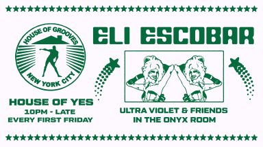 Welcome to House of Grooves - a love letter to the dancefloor, a night where we invite the Eli Escobar to play a marathon 6-hour set, open-to-close, all night long - every month! With bonus vibes by DJ Ultra Violet in The Onyx Room, come get in the groove, get off your phone, dress to express, and dance it out.