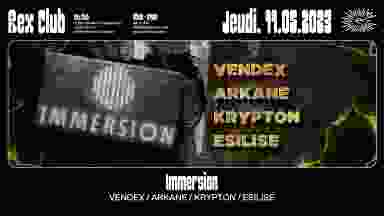 Immersion arrive au Rex Club Jeudi 11 Mai pour une douzième édition Hard Techno avec @vendexofficial • @