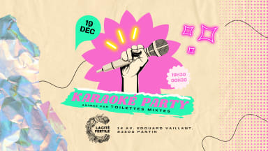 🌟 Suite à l’édition incroyable de fin novembre, Toilettes Mixtes revient faire vibrer la Cité Fertile pour une nouvelle soirée KARAOKÉ XXL ! Prépare ton plus beau look (le plus classe… ou le plus kitsch) et viens hurler tes chansons préférées en chœur avec une foule en délire ! 📅 Rendez-vous le 19 décembre pour chanter, danser et ne plus avoir de voix ensemble… 🎤 AU PROGRAMME Tubes légendaires toutes générations confondues Écran géant prêt à accueillir tes plus grands moments de gloire Micros ouverts pour chanter à pleins poumons… sans jugement ! 5h de pur karaoké déchaîné !! 🍕 À MANGER & À BOIRE Bar et restauration sur place pour recharger les batteries entre deux performances dignes de stade. 💗 ENTRÉE LIBRE & GRATUITE POUR TOUT LE MONDE Prêt·e à devenir la star de la soirée ? 🎶🔥 INFORMATIONS PRATIQUES ✸ 𝗖̧𝗮 𝘀𝗲 𝗽𝗮𝘀𝘀𝗲 𝗼𝘂̀ ? La Cité Fertile, 14 Avenue Edouard Vaillant, 93500 Pantin ✸ 𝗟𝗮 𝗖𝗶𝘁𝗲́ 𝗙𝗲𝗿𝘁𝗶𝗹𝗲 𝗰'𝗲𝘀𝘁 𝗾𝘂𝗼𝗶 ? Ancienne gare de marchandises SNCF de Pantin, la Cité Fertile c'est 1 hectare et 4 ans au service de la transition écologique et sociale. Tiers-lieu d’expérimentation, la Cité Fertile veut réunir, inspirer et mobiliser tous les publics autour des enjeux de la ville durable grâce à une programmation et des projets engagés. Plus d’infos >> www.citefertile.com ✸ 𝗖𝗼𝗺𝗺𝗲𝗻𝘁 𝘃𝗲𝗻𝗶𝗿 ? RER E Pantin (4 minutes à pieds) Métro Quatre Chemins – ligne 7 (8 minutes à pieds) Métro Hoche – ligne 5 (10 minutes à pieds) Tram 3 Ella Fitzgerald (5 minutes à pieds) Bus 170, 249, 330 arrêt Jean Moulin Parking à vélo à l’entrée du site. Pas de parking voitures. https://www.instagram.com/la_cite_fertile https://www.instagram.com/toilettesmixtes
