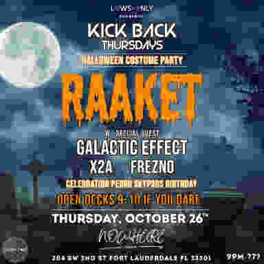 Join us this thursday for a Halloweeen costume party with RAAKET, Galactic Effect, X2A & Frezno!