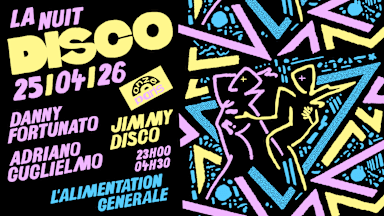 🪩 Le dancefloor d’abord. Le reste suit. La Nuit Disco, c’est une nuit 100% vinyle, sans compromis — un voyage entre Disco, Boogie, Italo, Afro, Brésil & grooves inattendus. Héritier direct du 14 février 1970. 🌈 Ouvert, chaleureux, sans posture 🫶 Tu viens comme tu es, tu repars en sueur 🔥 La soirée pour les danseur•euses et les vrais sensibles au groove Pas de raccourcis. Juste de l’âme, de l’artisanat musical, et du groove. ⚠️ Capacité limitée — ça partira vite ▬▬▬▬▬▬▬▬▬▬▬▬▬▬ 📍 INFOS PRATIQUES → Adresse : 64 Rue Jean-Pierre Timbaud, 75011 Paris Métro Oberkampf (L5) / Parmentier (L3) → Billetterie : 5€ abonné.e 9€ early 12€ regular 15€ sur place avec conso ▬▬▬▬▬▬▬▬▬▬▬▬▬▬ 👀 SUIVEZ-NOUS https://shotgun.live/fr/venues/l-alimentation-generale https://www.facebook.com/lalimentation.generale https://www.instagram.com/alg_paris/ http://alimentation-generale.net/