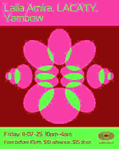 Immersed in the euphoric realms of disco, house, techno, and electro melodies, Laila Amira draws inspiration from the vibrant pulse of New York City's nightlife to sculpt a sonic haven where reality surrenders to rhythm. Her journey as a curator is fueled by the transformative power she witnesses on the dancefloor, where connections bloom and euphoria ignites. Through her musical odyssey, Laila seeks to get listeners to embark on a journey of liberation- out of their heads and into their bodies. Since the start of her journey, she has graced nightlife stays at iconic venues such as Knockdown Center, Good Room, Elsewhere, Jolene Sound Room, Le Bain, Mood Ring, Bossa Nova Civic Club, Cafe Balearica, and Superior Ingredients. Laila Amira is also the co-host of Club Made Radio on Newtown Radio, a show and mix series dedicated to interviewing those changing the nightlife landscape today. LACATY is a DJ and producer based in Berlin. She’s known for her uplifting sets that radiate contagious energy. Her sound is unmistakably fresh and punchy. Blending together 90s house gems with groove, breaks, powerhouse, and garage with an element of fun and lightheartedness. Good vibes only, with a twinge of naughtiness, the purpose of her sets is always to make people let loose, smile and just have a good time. Her debut EP ‘Cascade’ on Berlin’s OYE Records, features three tracks designed to ignite any dance floor, channeling the exuberant spirit of the 90s music scene. Each track is a tribute to euphoric dance experiences intertwined with a nostalgic undercurrent, and has seen support from the likes of Sally C, Zombies in Miami and Lovefoxy. Raised in Paris, New York, and Montréal, Yambow draws inspiration from house, hip hop, and soulful music. As both a producer and DJ, he brings a live set experience infused with improvisation, skillfully incorporating his guitar on stage. Resident of the French house music collective Marbré and Kumo, he has honed his craft at esteemed venues like Le Badaboum, Madame Loyale, le YOYO, and internationally at spots like NewSpeak (Montréal) or Nublu (NYC). As both a producer and DJ, Yambow brings a live set experience infused with improvisation, skillfully incorporating his guitar on stage. 2024 promises exciting developments for Yambow, with anticipated releases on esteemed labels, collaborative projects, and DJ performances in Paris and beyond. Recently, Yambow has been inviting his friend and rapper AVC on stage, a London-born rapper, adding a dynamic layer to his performances. The duo's synergy and AVC's crowd interaction elevate Yambow's improvisational sets, creating an exciting and interactive experience with the audience. Opening set by Nico Lillien Free before 10pm __________ Jupiter Disco is a safe space for all. Our most important goal is to ensure everyone who steps into our space feels welcome and safe. In order to achieve this goal, it's mission critical that everyone approaches each other with respect. That means everyone. We are passionate about bringing people together and building connections between participants in and adjacent to our community. Go ahead and say hi to someone new while you're here with us! If you see or experience anything that makes you feel uncomfortable, please alert one of our team members and we will coordinate a resolution immediately. We encourage everyone to be present and interface with the physical elements around you while you're with us, so we ask that you please limit your phone use throughout the space. Phone screen and camera lights can also be distracting, so please be mindful of the brightness and the length of time you use those lights, if at all. If you intend to smoke (anything), please take a break outside and take a few steps down the block. Don't worry, we always have re-entry.