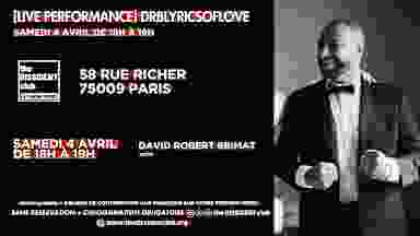 RnB, pop, rap, électro : David Robert Brimat vous invite à découvrir un univers musical vibrant et personnel. Entre compositions originales et interprétations sur instrumentales, sa voix vous transporte dans une ambiance moderne et captivante. Un live intense, mêlant émotions, groove et énergie. Venez vivre un moment unique et authentique. 🗓️ SAMEDI 4 AVRIL de 18H à 19H 📍 58 rue Richer 75009 Paris 🔴 entrée gratuite + sans réservation + 5 € (minimum) de contribution aux musiciens sur votre premier verre (nous préférons l'argent liquide) + consommation obligatoire 🌐 visitez www.thedissidentclub.org pour plus d’informations