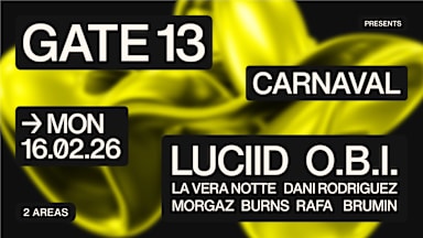 No Carnaval 2026, a Gate13 apresenta uma noite imperdível 🔥 No lineup, Luciid, um dos nomes mais badalados do hardtechno mundial, e O.B.I, DJ e produtor alemão com mais de 20 anos de experiência, com atuações a solo e um poderoso set B2B que promete levar a pista ao limite. A noite conta ainda com os espanhóis La Vera Notte e Dani Rodriguez, e com os talentos nacionais Morgaz, Burns, Rafa e Brumin. Uma experiência intensa do início ao fim, com duas áreas abertas, dois estilos musicais e adrenalina garantida.