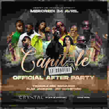 CRYSTAL PARIS présente -- Mercredj 24 Avril -- OFFICIAL AFTER PARTY - After La Capitale Le Concert Le Rendez vous HIP HOP Parisien au sein du Triangle d'Or et de l'Avenue Des Champs Élysées Show & Guest au rendez vous, ambiance festive jusqu'à l'aube dans un cadre chic et moderne ! Entrée Gratuite et une conso offerte jusqu'à 1H00 sur présentation du Pass. Bouteille de champagne offerte pour les groupes de 5 filles sur présentation du Pass jusqu'à 1H00. DJ ALAK JACKSON & DJ ISO CACHETAGO KOKOS 📍CRYSTAL PARIS 51 Rue de Ponthieu 75008 Paris Infos & Booking Table au 06.45.55.65.55 Soyez au rendez-vous ! 🗓️ Ouverture des portes à partir de 00:00 🕛 Tenue correcte exigée - La direction se réserve le droit d’entrée Métro : Lignes 1 (Franklin Roosvelt) RER : Ligne A (Charles de Gaule Étoile) Parking : 62 rue de Ponthieu 75008 Paris (Tarif Unique)