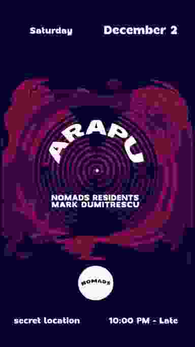 On December 2nd, we are very excited to welcome back none other than Arapu. No stranger to our parties of recent years, Arapu hypnotically blends groove and rhythm in what sure to be one for the record books. Nomads Resident will provide support! Be sure to grab your tickets now before the day of the event as we look forward to a memorable Nomads experience once again ;)