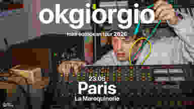 Allo Floride présente okgiorgio à La Maroquinerie le 23 mai 2026. DJ, producteur et multi-instrumentiste italien, okgiorgio fait son grand retour à Paris après deux concerts complets l'année dernière. En 2025, porté par le succès de son EP ko et une reconnaissance internationale, okgiorgio a fait la première partie de Fred Again.. et a collaboré avec Camoufly, Crookers et Anfisa Letyago. Rendez-vous à La Maroquinerie pour un nouveau live unique, où cette fois-ci il formera un groupe comprenant deux batteurs.