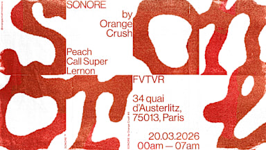 SONORE est la nouvelle soirée organisée par Orange Crush pour partager l'amour de la musique au-delà des portes du festival. Nous avons le plaisir d’accueillir pour cette soirée, Peach & Call Super, 2 artistes très implantés sur la scène européenne, qu'on peut voir jouer dans les festivals les plus pointus de la sphère électronique. Viendront les épauler : Lernon, petit prodige de la house et co-fondateur du festival Desertland, désormais installé à Amsterdam.