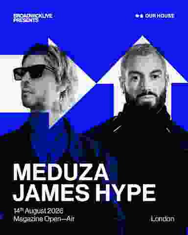 echnical wizardry, relentless energy. Two of the most electrifying names in dance music, MEDUZA and James Hype bring their collaborative project Our House to London for an extended outdoor session at Magazine Open—Air on Friday 14th August.