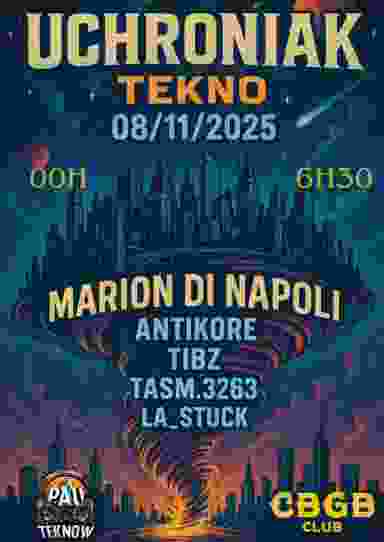 🎧 PAUTEKNOW présente : UCHRONIAK - Good Vibes Edition 📅 Vendredi 8 novembre 2025 📍 CBGB Club – Pau 🕛 00h00 → 6h30 🔥 Prépare-toi pour une nuit électrisante sous le signe des good vibes et de la bonne énergie ! PAUTEKNOW revient en force avec une programmation de feu et 5 DJs qui vont retourner le CBGB jusqu’au lever du jour ! ⭐ Tête d’affiche : MARION DINAPOLI ( LAKAJOFOL ) Connue pour ses sets puissants et son univers hypnotique, Marion Di Napoli viendra enflammer la scène avec son énergie unique ! 🎶 Line-up complet : Marion DiNapoli Antikore Tibz Tasm.326 La Stuck 🌀 Une soirée intense, entre sonorités techno, good vibes, et une ambiance bienveillante et survoltée comme seule la team PAUTEKNOW sait le faire. 💥 Viens vibrer, danser, partager et laisser la bonne énergie t’envahir ! 🎟️ Places limitées – préventes conseillées ! 👉 Réserve dès maintenant et rejoins la vague PAUTEKNOW.