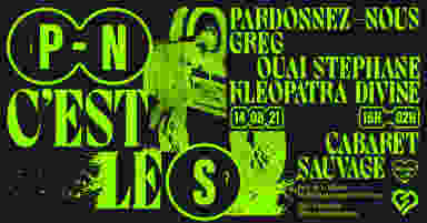 🔴 YO LE 💯 N'OUBLIEZ PAS VOTRE YOLOPASS SANITAIRE POUR POUVOIR ACCÉDER À LA PARTY ! 🔴 C’est le P c’est le N c’est le S et c’est reparti pour un tour, après avoir passé Juillet à mettre la daronne à l’abri on est de retour pour une volée de bois bien vert dans notre Cabaret pref’. Avec ¡Sauvage?, on en a profité pour ramener la mifa, tu connais : Ouai Stephane, on l'appelle l'ovni avec son live surréaliste, le meilleur sur cette planète so far, et ça tombe bien on a l’exclu pour l’été. Plus c’est rare, plus c’est bon, et là c’est carrément furibond. Greg, qui vient de sortir un ep en forme de navette spatiale sur LaVibe, résident La Créole, besoin de personne pour trouver ses mélodies ni te fournir le meilleur set de ton après-midi. Kleopatra divine, le sang le diamant, le shit real du hip-hop et du rap à 100%, on l’aime, on l’invite, t'as snappé ? Et nous même Pardonnez-nous pour mettre le bordel à la fin, pas besoin d'en dire plus. Alors la zone, ça dit quoi ? C'est l'été, tous les jours c'est samedi soir 🔥 ____________________ INFO 💅 ¡PN c'est le S? 14 août 2021 16h-minuit Système son de batard sensible Réservé aux personnes majeures Entrée gratuite jusqu'à 20h puis 10€ sur place Flyer : Studio Jimbo ____________________ ACCES 📍 CABARET SAUVAGE - Parc de la Villette 59 Boulevard Macdonald - 75019 Paris. Ⓜ Métro ligne 7 : Porte de la Villette Ⓜ Métro ligne 5 : Porte de Pantin Tramway : Ella Fitzgerald ou Porte de la Villette