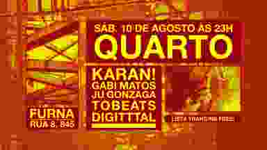 Nossa intenção sempre foi surpreender nossa pixta, sempre com novos nomes e musicalidade diversificada, e dessa vez não vai ser diferente. Essa será a Quarto mais caliente de todas, trazendo a Selvática Eletrônica pro line e com três estreias de peso!!! Isso é música eletrônica marginal resistindo no Centro!
