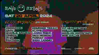 Kompass presents 5Y Rave Rebels (Outdoor + Indoor) ㋡ Belgium's Biggest Rave Festival (Outdoor + Indoor) Outdoor: Atomium, Brussels Indoor: ING Arena, Brussels ▻ Saturday: 20 April 2023 start 14h00, end 07h00 FULL LINE UP [a-z] INDOOR (14h-07h) 999999999 Carv Charlie Sparks Creeds Dyen Fantasm Klaps Kompass Traxx Lando Riské Nico Moreno Parfait Sara Landry OUTDOOR (14h-20h) Dj Heartstring Emilija Marlon Hoffstadt B2B Malugi ▻ Location: Brussels Expo, Belgium. Any questions? Please visit our website at www.raverebels.com or send an email to info@raverebels.com ㋡ www.raverebels.com ㋡ facebook.com/raverebelsfestival ㋡ instagram.com/raverebels Official partners: ㋡ Studio Brussel ㋡ Brussels Expo ㋡ Visit Brussels If you feel unwell or unsafe, a professional medical crew and security team is always at your disposal. Leave the booze when you cruise. 18+