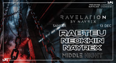 ⛓️SAMEDI 13 DECEMBRE ⛓️ ⚡RAVELATION by Nayrex — Part 9 – GUEST « RABTEU & NEOKHIN » Pour cette 9e édition, Nayrex et le Middle Night ont le plaisir d’inviter : RABTEU ET NEOKHIN ! ________________________________________ 🎧 RABTEU Originaire de Toulouse, Rabteu fait vibrer les scènes avec une techno puissante et sans détour. Entre hard rave, kicks incisifs et énergie survoltée, ses sets transforment chaque dancefloor en zone de tension maîtrisée. Avec un style taillé pour les heures de pointe, Rabteu s’impose comme un nom à suivre de près sur la scène électronique française. 🎧NEOKHIN NEØKHIN est un DJ et producteur de musique originaire de Clermont-Ferrand, mêlant l’énergie brute de la Hardtechno à l’esprit underground de la Tekno. Influencé par des artistes tels que Vortek’s, DJSM et bien d’autres, il t’invite à entrer dans son univers — une fusion entre mélancolie profonde et rythmes puissants et percutants. Actif en tant que producteur depuis deux ans, NEØKHIN a sorti des morceaux sur des labels tels que Organik, Proclam et Whalien. Son travail est soutenu et joué par des artistes reconnus internationalement comme Charlie Sparks, Doruksen, CLTX, Nicolas Julian, et bien d’autres. 🎧NAYREX Nayrex, DJ et passionné de musique, plus particulièrement de la techno et de ses sous-genres. Actif depuis 2023 et originaire de Clermont-Ferrand, il explore les sonorités les plus percutantes et énergiques de la scène techno actuelle. Ses sets fusionnent la puissance et l’énergie de la Hard Techno aux influences industrielles, ainsi que les mélodies et kicks du Rawstyle. En l’espace de deux ans, Nayrex s’est produit en clubs, festivals et raves, notamment à Clermont-Ferrand et Marseille, et continue à élargir son réseau à l’échelle nationale ________________________________________ 🎵 LINE-UP ▀▀▀▀▀▀▀▀▀ • RABTEU • NEOKHIN • NAYREX ________________________________________ 📍 INFOS PRATIQUES ▀▀▀▀▀▀▀▀▀ 🗓️ Date : Samedi 13 Décembre 🕒 Horaires : 23h45 – 06h00 🎫 Préventes prioritaires jusqu’à 1h 🎽 Vestiaire offert avec la prévente ⚠️ Nombre de préventes limitées ! 📍 Lieu : Middle Night — 12-14 Rue Ramond, Clermont-Ferrand 🚋 Tram : Arrêt Lagarlaye (2 min à pied) 🚗 Parking : Centre Jaude 1 (5 min à pied) La nuit est à vous, vivez-la sans excès !!! Celui qui conduit, c’est celui qui ne boit pas. L’abus d’alcool est dangereux pour la santé, à consommer avec modération.