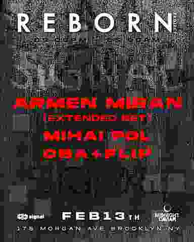 Join Reborn Project and Midnight Caviar for their first collaborative event at Signal, one of Brooklyn's favorite intimate clubs. Enjoy an extended set from Armen Miran alongside local favorites ọba+flip.