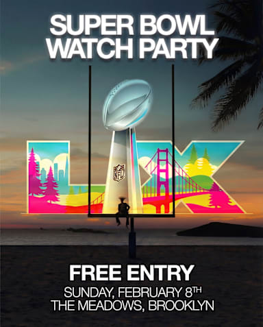 🏈 Whether you’re a big football fan or just here for the halftime moment with Benito, this is the perfect Super Bowl plan. Join us at The Meadows in Brooklyn for a fun Super Bowl Watch Party with great energy and an even better crowd. Free entry, good drinks, and a vibe that keeps the night going from kickoff to halftime and beyond. Come with friends, grab a drink, and enjoy the Super Bowl your way. 21+ NO REFUNDS All tickets are non-refundable and non-exchangeable. Event cancellations without a rescheduled date will result in an automatic full refund to the original credit card used for the purchase. Your purchase of a ticket implies agreement with this policy. Please verify event details before buying tickets. By attending this event, you grant reggaetonLABS permission to photograph and record you, and to use your image for promotional purposes. Please ensure you bring a government-issued ID with your date of birth. By purchasing this ticket, you agree to our Terms & Conditions