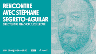 VDJ 09/04 - Rencontre avec Stéphane Segreto Aguilar 18h30 -19h30 Stéphane Segreto-Aguilar travaille depuis près de vingt ans à l’échelle européenne dans le champ de la coopération culturelle. Directeur du Relais Culture Europe (Bureau Europe Créative France), il accompagne les acteurs culturels et créatifs dans le développement de projets européens et de collaborations internationales. Il a auparavant dirigé les relations internationales d’ARTCENA et coordonné Circostrada, réseau européen dédié au cirque contemporain et aux arts de la rue. Son travail s’inscrit à l’intersection des politiques culturelles européennes, de la coopération internationale et des dynamiques de réseaux. Il est également membre du conseil d’administration d’On the Move, réseau international consacré à la mobilité des artistes et des professionnels de la culture. Il sera présent jeudi 9 avril pour échanger autour des enjeux que connaissent les dispositifs de financement européens. Cycle gratuit et ouvert à toutes et tous, « Visiteurs et Visiteuses du jeudi » entend outiller, de manière didactique et horizontale les nouveaux acteurs et actrices culturel·les. C’est aussi l’occasion pour les jeunes médias du territoire et les collectifs locaux d’échanger et de se rencontrer. Avec « Visiteurs et Visiteuses du jeudi », l’association Arty Farty, fondatrice entre autres du festival Nuits sonores, du Sucre et de HEAT, poursuit son objectif de transmission aux nouvelles générations. ▬▬▬▬▬▬ INFOS PRATIQUES — Pas de vente sur place Hôtel71, 71 quai Perrache, 69002 Accès par les escaliers côté Saône Ⓣ Tram T➊ : arrêt Hôtel de Région Ⓑ Bus S➊ : arrêt La Sucrière Ⓥ Velo’v : arrêt Confluence Hôtel de Région Ⓥ Vaporetto : arrêt Confluence ≡ Accessibilité : Hôtel71 est accessible aux personnes en situation de handicap. bonjour@hôtel71.eu