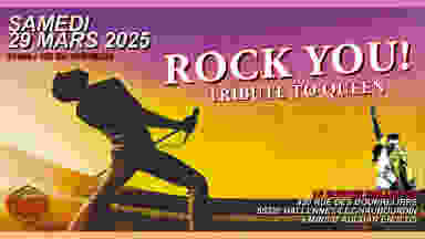 Le samedi 29 mars, préparez-vous à revivre la magie de Queen avec le groupe ROCK YOU!, un tribute band explosif qui va enflammer la scène comme jamais. 🔥