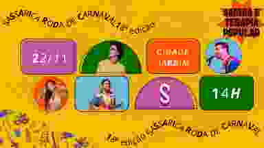 ✨ Sassarica 18ª Edição ✨ Depois de seis meses de pausa, o Sassarica está de volta e vem para fazer história de novo! No dia 22 de novembro, das 14h às 22h, a nossa roda chega com tudo em um local inédito e cheio de axé: a lendária Escola de Samba Cidade Jardim, 18 vezes campeã do Carnaval de BH. Um espaço com alma, onde a energia da rua e da comunidade se encontram com o som que faz o coração bater mais forte. 💚💛❤️ Essa edição promete ser caótica, intensa e CHOCANTE do jeitinho que a gente gosta! As atrações ainda são segredo… mas a dica é: pensem em nomes que fazem o chão tremer, que trazem ancestralidade e aquela energia que só o Sassarica sabe reunir. 👀🔥 Confia na gente: vai ser um dia inesquecível. Então já sabe.. Garanta seu ingresso no valor promocional, porque quem confia no Sassarica sempre sai na vantagem, com o coração cheio e o corpo leve de tanto dançar.