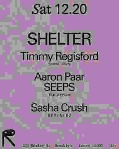 Shelter: Timmy Regisford / Aaron Paar + Seeps / Sasha Crush