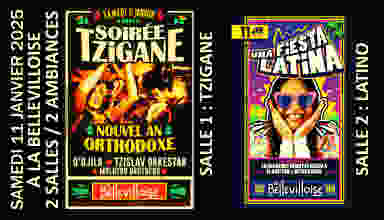 SOIRÉE TZIGANE "SPÉCIAL NOUVEL AN ORTHODOXE" + FIESTA LATINA SOIRÉE TZIGANE & FIESTA LATINA 2 SALLES / 2 AMBIANCE Billets donne accès à deux salles SALLE 1: Soirée Tzigane Paris » vous invite à son "Nouvel An Orthodoxe" Un voyage magique au cœur des Musiques Tziganes, d’Europe de l’Est, des Balkans, Klezmer … Le mélange parfait pour faire la fête, taper des mains, des pieds, danser et chanter jusqu’au petit matin. Concerts et dj’s, folklorique et électronique, un vrai moment de bonheur, de partage et de paix qui vous transporte, le temps d’une nuit, dans un univers sans frontières. LINE-UP ★ CONCERTS 🎺 Tzislav Orkestar https://www.instagram.com/tzislav_orkestar 🪗 O'Djila https://www.facebook.com/groups/odjila ★ DJ SET 🎧 Molotov Brothers https://www.facebook.com/molotovbrothers https://www.instagram.com/molotovbrothers SALLE 2 : Una Fiesta Latina L'équipe de "Soirée Latino Paris" vous donne rdv pour son clubbing latino le plus caliente de la capitale. De 22h à 06h du matin, un voyage musical à travers le temps et le continent "Latin America". COURS SALSA / DJ SETS / CLUBBING LATINO / PROJECTIONS, des sons d'hier et d'aujourd'hui, animé par les artistes incontournable des soirées latinos à Paris. Line Up : ACADEMIA MARITZA ARIZALA instagram.com/academiamaritzaarizala 🎧 Djs EL CAPITÁN instagram.com/captaincumbia ORTEGA DOGO instagram.com/ortegadogo ═ INFOS PRATIQUES ══════════ Samedi 11 Janvier 2025 de 22h à 06h 🏠 LA BELLEVILLOISE 19/21 rue Boyer 75020 Paris 🚊 M° Ménilmontant / Gambetta 🎟️ Prix : 12 € : Préventes 15 € : Sur Place SUIVEZ-NOUS Évènement co-produit par Sasha Obradovic (So Prod) & Captain Cumbia (Ménilmontant Productions) https://www.instagram.com/labellevilloise https://www.instagram.com/sasha_obradovic https://www.instagram.com/captaincumbia https://www.instagram.com/soireelatinoparis