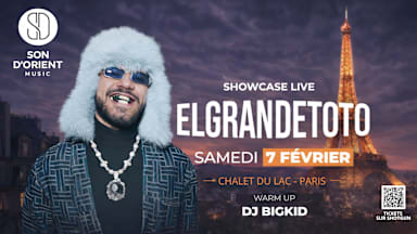 SON D’ORIENT MUSIC présente EL GRANDE TOTO en showcase live Le vendredi 7 février 2026, Son d’Orient Music prend possession du Chalet du Lac-Paris pour une soirée explosive dédiée au hip-hop et aux vibes urbaines. 🎤 EL GRANDE TOTO Figure incontournable de la nouvelle scène rap marocaine, ElGrandeToto est aujourd’hui l’un des artistes les plus streamés du monde arabe. Entre trap, drill et influences orientales, il enchaîne les hits et les shows sold-out à l’international. Un artiste brut, une énergie unique, et un showcase exceptionnel à Paris. 🎧 DJ Bigkid Aux platines pour faire monter la pression toute la nuit, DJ Bigkid accompagnera le showcase avec une sélection hip-hop / urban survoltée. 🕚 Horaires 🗓️ Vendredi 7 février 2026 ⏰ 23h00 – 04h00 📍 Lieu Chalet du Lac - Bois de Vincennes, 2 Av. Anna Politkovskaïa Orée du, 75012 Paris 🎟️ Billetterie – TICKET NORMAL — FLOOR ACCESS 🍾 Réservation de table VIP 📞 +33 7 59 39 11 27 ⚠️ Toute sortie est définitive 🚫 Accès interdit aux mineurs 🆔 Pièce d’identité obligatoire 🔥 Une nuit. Un artiste. Une énergie. Bienvenue chez Son d’Orient Music.
