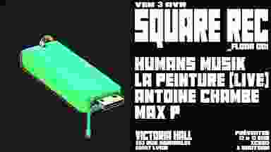 SQUARE REC — Première à Lyon Victoria Hall | 19h → 01h Square Rec lance sa première soirée à Lyon au Victoria Hall avec un line-up taillé pour le club. En tête d’affiche, Humans Musik, duo qui sort notamment des morceaux sur Diynamic, le label de Solomun. Une signature entre techno mélodique et indie dance, pensée pour le dancefloor. Le duo lyonnais La Peinture jouera en live machine, une performance brute construite en direct. Antoine Chambe et Max P lanceront la soirée en B2B. Format spécial : 19h → 01h.