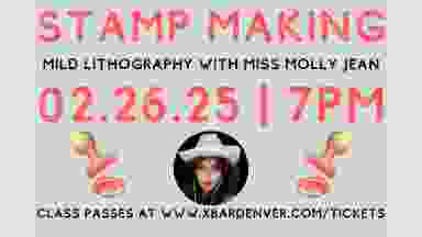 Join us on February 26 for Stamp Making | Mild Lithography with Miss Molly Jean where you will: