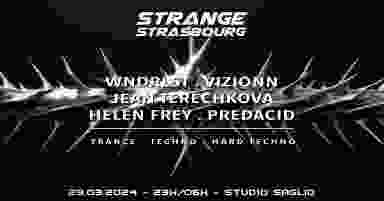 👾 STRANGE invite WNDRLST + VIZIONN + JEAN TERECHKOVA ! 👾 Le 23 Mars 2024, STRANGE vous invite à un voyage tumultueux au cœur d'une techno sombre et brutale, commandé par des invités de prestige. Nous aurons le plaisir d'accueillir WNDRLST, VIZIONN et JEAN TERECHKOVA aux côtés de nos résidents HELEN FREY et PREDACID pour sept heures de rave intense entre les murs du Studio Saglio de Strasbourg ! 👾 👾 LINE UP 👾 👾 WNDRLST 🇫🇷 - SC : https://soundcloud.com/WNDRLSTT 👾 JEAN TERECHKOVA 🇫🇷 - SC : https://soundcloud.com/jeanterechkova 👾 VIZIONN 🇫🇷 - SC : https://soundcloud.com/vizionn_fr 👾 PREDACID 🇫🇷 - SC : https://soundcloud.com/predacid 👾 HELEN FREY 🇫🇷 - SC : https://soundcloud.com/helenfrey ✨ VISUEL : @fluid_heart ⏱ TIMETABLE ⏱ 23H00 - 00H30 : PREDACID 00H30 - 01H30 : HELEN FREY 01H30 - 03H00 : VIZIONN 03H00 - 04H30 : WNDRLST 04H30 - 06H00 : JEAN TERECHKOVA 💻 RÉSEAUX SOCIAUX 💻 Facebook : https://www.facebook.com/Amnexiaprod?locale=fr_FR Instagram : https://www.instagram.com/amnexia_production/?hl=fr TikTok : https://www.tiktok.com/@amnexia.production?lang=fr ⚠️ INFORMATIONS ⚠️ Lieu : Le Studio Saglio, lieu de culture réservé aux musiques électroniques. Son club entièrement sonorisé par Funktion One et sa grande terrasse en font l'un des lieux de référence de la région Grand Est. Adresse : 16 Rue Saglio, 67100 Strasbourg Vestiaire : - Sac : 4€ (Dépôt obligatoire) - Manteau, vestes... etc : 2€ (Dépôt recommandé) Toutes les tenues vestimentaires sont acceptées. Événement interdit aux mineurs. Carte d'identité obligatoire. La direction se réserve le droit d'accès à l'établissement.