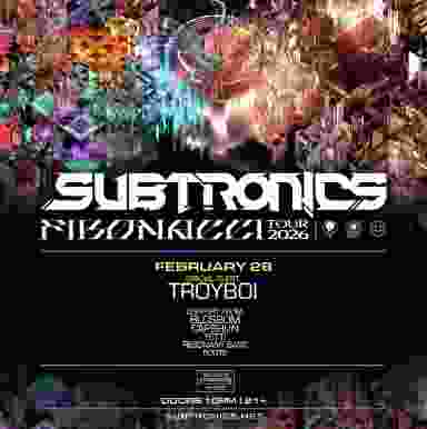 February 28: Subtronics (Fibonacci Tour 2026) Subtronics Special guest: TroyBoi Suport from: Blossom Capshun Yetti Resonant Bass Roots Table Reservations: WhatsApp: +1 (718) 614-2563 Email: